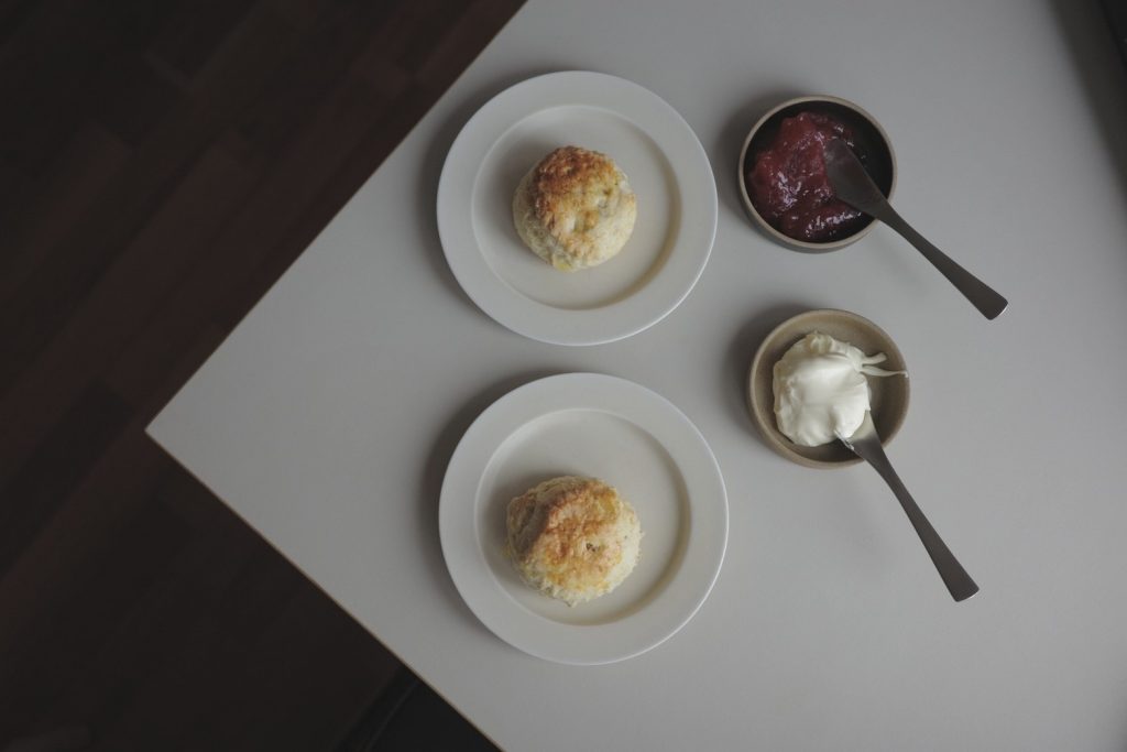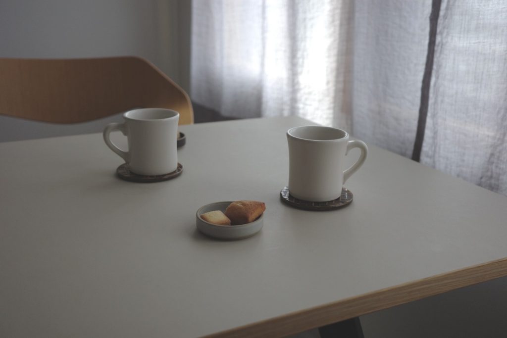 飲み物に添えるのは、焼き菓子や季節の果物、ごくたまにふたりで焼いたスコーン。